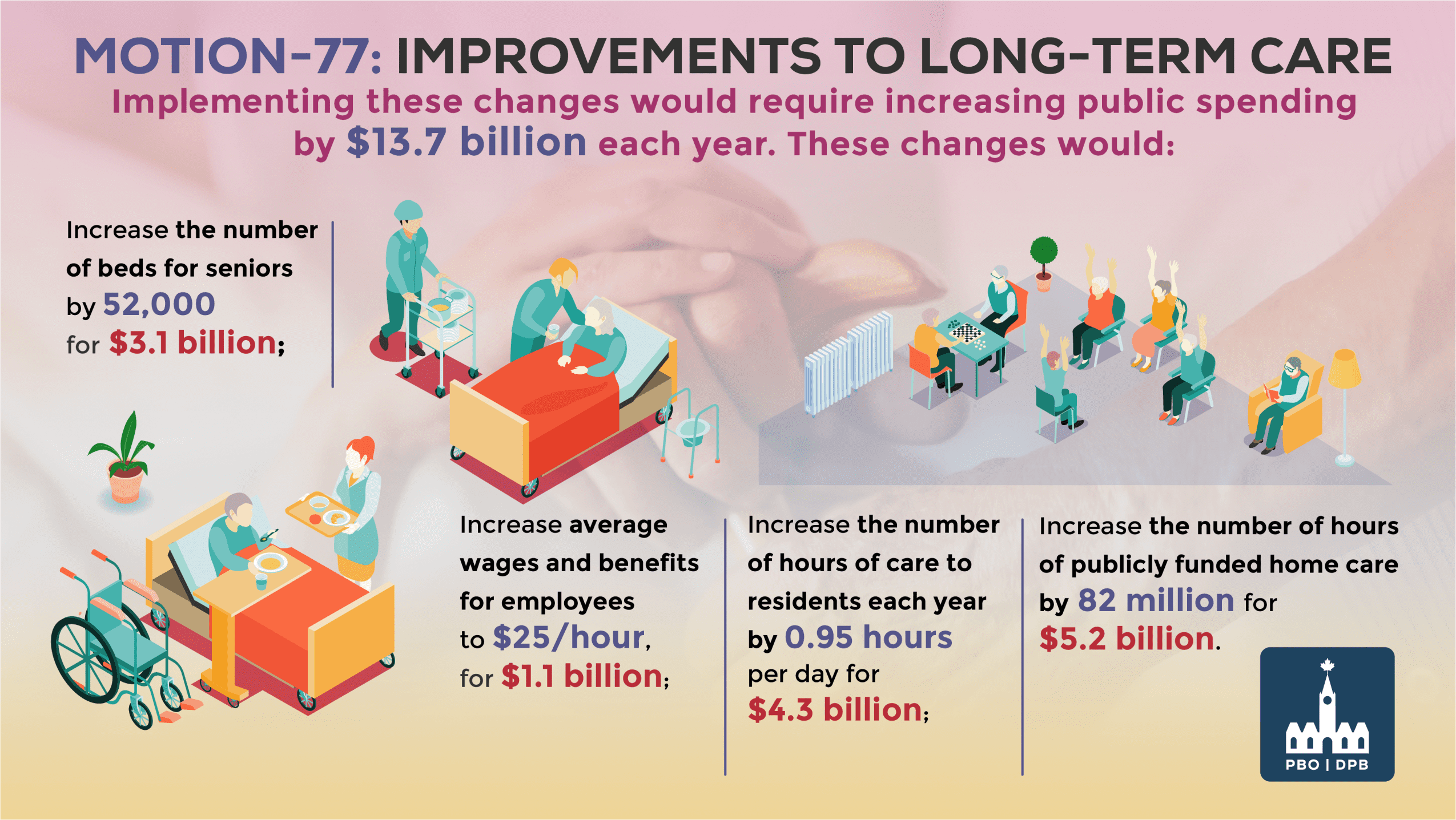 {"id":"RP-2122-013-M","is_published":"2021-08-04T13:00:06.000000Z","release_date":"2021-08-04T13:00:00.000000Z","last_revised_date":null,"title_en":"Cost Estimate for Motion 77: Improvements to Long-Term Care","title_fr":"Estimation des co\u00fbts d\u00e9coulant de la motion 77 : Am\u00e9liorations concernant les soins de longue dur\u00e9e","internal_id":"RP-2122-013-M","metadata":{"abstract_en":"This report estimates the cost of implementing House of Commons Motion-77, which proposes several financially significant changes to long-term care for seniors. This report was prepared at the request of Mr. Paul Manly, MP for Nanaimo\u2014Ladysmith.","abstract_fr":"Ce rapport fournit une estimation des co\u00fbts de mise en \u0153uvre de la motion 77 de la Chambre des communes, qui propose plusieurs changements importants d\u2019un point de vue financier aux soins de longue dur\u00e9e pour les personnes \u00e2g\u00e9es. Ce rapport a \u00e9t\u00e9 pr\u00e9par\u00e9 \u00e0 la demande de Paul Manly, d\u00e9put\u00e9 de Nanaimo \u2014 Ladysmith.","highlights":null},"updated_at":"2021-08-04T13:00:06.000000Z","type":"RP","slug":"RP-2122-013-M--cost-estimate-motion-77-improvements-long-term-care--estimation-couts-decoulant-motion-77-ameliorations-concernant-soins-longue-duree","permalinks":{"en":{"website":"https:\/\/www.pbo-dpb.ca\/en\/publications\/RP-2122-013-M--cost-estimate-motion-77-improvements-long-term-care--estimation-couts-decoulant-motion-77-ameliorations-concernant-soins-longue-duree","preview":"https:\/\/www.pbo-dpb.ca\/en\/publications\/RP-2122-013-M--cost-estimate-motion-77-improvements-long-term-care--estimation-couts-decoulant-motion-77-ameliorations-concernant-soins-longue-duree"},"fr":{"website":"https:\/\/www.pbo-dpb.ca\/fr\/publications\/RP-2122-013-M--cost-estimate-motion-77-improvements-long-term-care--estimation-couts-decoulant-motion-77-ameliorations-concernant-soins-longue-duree","preview":"https:\/\/www.pbo-dpb.ca\/fr\/publications\/RP-2122-013-M--cost-estimate-motion-77-improvements-long-term-care--estimation-couts-decoulant-motion-77-ameliorations-concernant-soins-longue-duree"}},"artifacts":{"main":{"en":{"public":"https:\/\/distribution-a617274656661637473.pbo-dpb.ca\/46d6a48451ea460cb2beefb46620819308f298940c57227ea95ae03edd39f61d"},"fr":{"public":"https:\/\/distribution-a617274656661637473.pbo-dpb.ca\/6454e34fe5733b262d6dd75591aaaaef0bf5c9c708fc453d046f56abf9beeb78"}}},"coverpages":{"distribution":{"fr":{"small":"https:\/\/distribution-i696d61676573.pbo-dpb.ca\/19b889a768a326643d95e8e0dc312f8adb096bf1fcbe9a5002bf4ad0312b7690","large":"https:\/\/distribution-i696d61676573.pbo-dpb.ca\/7a6a010fff98cfcf1ae541330d3ec8213ffb594243ff478cb99b9f84248b231e","h150_png_optimized":"https:\/\/distribution-i696d61676573.pbo-dpb.ca\/d804d56075246ee187fbf74d3606d2ec63ca6f99515b010b53dc2ea69d73ce17","h150_webp":"https:\/\/distribution-i696d61676573.pbo-dpb.ca\/d17057461b3053132f5fb987fb6afe5044e4a4e3a7505ea5011e5069bb8446b5","h300_png_optimized":"https:\/\/distribution-i696d61676573.pbo-dpb.ca\/73d3b7803d62792c029a0b13bffa7f8cf6340fa3a4c8195e7ee5cae0a61d1ff3","h300_webp":"https:\/\/distribution-i696d61676573.pbo-dpb.ca\/04059ed4bc843b35224b86ce6122b8c7a698d57b13a2bfa056adc3a894d3769b","h600_png_optimized":"https:\/\/distribution-i696d61676573.pbo-dpb.ca\/3220c10f119eb5c33fcb925025e504c4d3c0d1d07730913385a07ccf4fbcfa88","h600_webp":"https:\/\/distribution-i696d61676573.pbo-dpb.ca\/15b6190401fc732ad4fdd4ea0ab9170cd4a7a56e03c54fff584592bfa5ae66a1"},"en":{"small":"https:\/\/distribution-i696d61676573.pbo-dpb.ca\/741041b8588b49321b2e10f31839ed51efb54c836b5c058e068c343a308c0405","large":"https:\/\/distribution-i696d61676573.pbo-dpb.ca\/c90473ece31a09ff572bee7efab37029c13a9d90e5e686a216792c64b97e5c31","h150_png_optimized":"https:\/\/distribution-i696d61676573.pbo-dpb.ca\/2149255159b2ecc0aaa0a3f81322e693f3495229431113d414dd5b29b9d25fd9","h150_webp":"https:\/\/distribution-i696d61676573.pbo-dpb.ca\/39a4c1e7cec0ef702137f1191ad69ad5b10234813040f343dc4aec6832e2e930","h300_png_optimized":"https:\/\/distribution-i696d61676573.pbo-dpb.ca\/17a73882aaa27bf12510f6368ae0a93b34c4175a939750556a565fd3ce791005","h300_webp":"https:\/\/distribution-i696d61676573.pbo-dpb.ca\/eab2f3071e5b3f7a723f2780a436f480072e2d8ee46285f81b0d8b42ab3003ff","h600_png_optimized":"https:\/\/distribution-i696d61676573.pbo-dpb.ca\/ed9b0be3643a6c8c601e7a718a01659bee271cc148a1ea1ca279c11ab8098951","h600_webp":"https:\/\/distribution-i696d61676573.pbo-dpb.ca\/7a223b05d6e861f6346329dc1ae0bc584b7b0ff461da93f1379187d9f6495064"}}},"bills":[],"labels":[],"bibtex":{"en":"@techreport{PBO-RP2122013M,\n author={Segel-Brown, Ben},\n title={Cost Estimate for Motion 77: Improvements to Long-Term Care},\n institution={The Office of the Parliamentary Budget Officer},\n year=2021,\n \n address = \u0022Ottawa, ON\u0022\n}","fr":"@techreport{DPB-RP2122013M,\n author={Segel-Brown, Ben},\n title={Estimation des couts d\\\u0027{e}coulant de la motion 77 : Am\\\u0027{e}liorations concernant les soins de longue dur\\\u0027{e}e},\n institution={Bureau du directeur parlementaire du budget},\n year=2021,\n \n address = \u0022Ottawa, ON\u0022\n}"}}