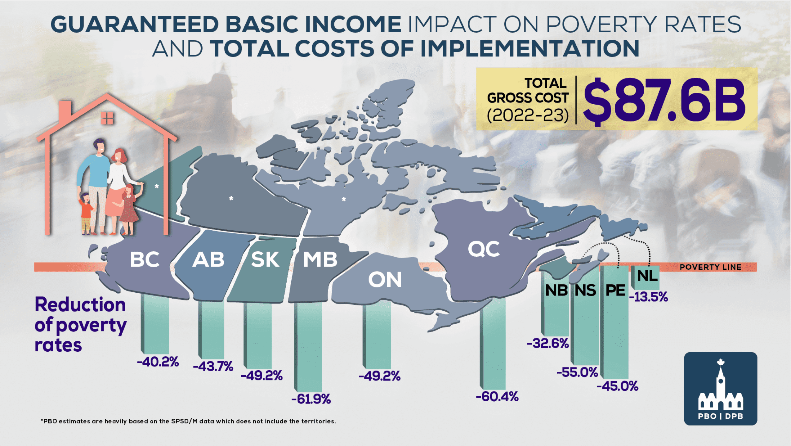 In July 2020, the Parliamentary Budget Officer (PBO) published a gross cost estimate of the Guaranteed Basic Income (GBI) and the fiscal offsets that could be generated by cancelling existing federal and provincial programs for low‑income individuals and families.[^6]