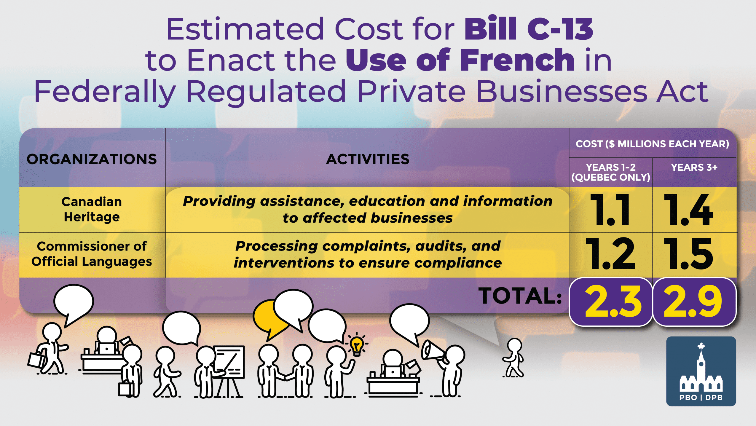 Cost Estimate for Bill C-13: An Act for the Substantive Equality of Canada's Official Languages