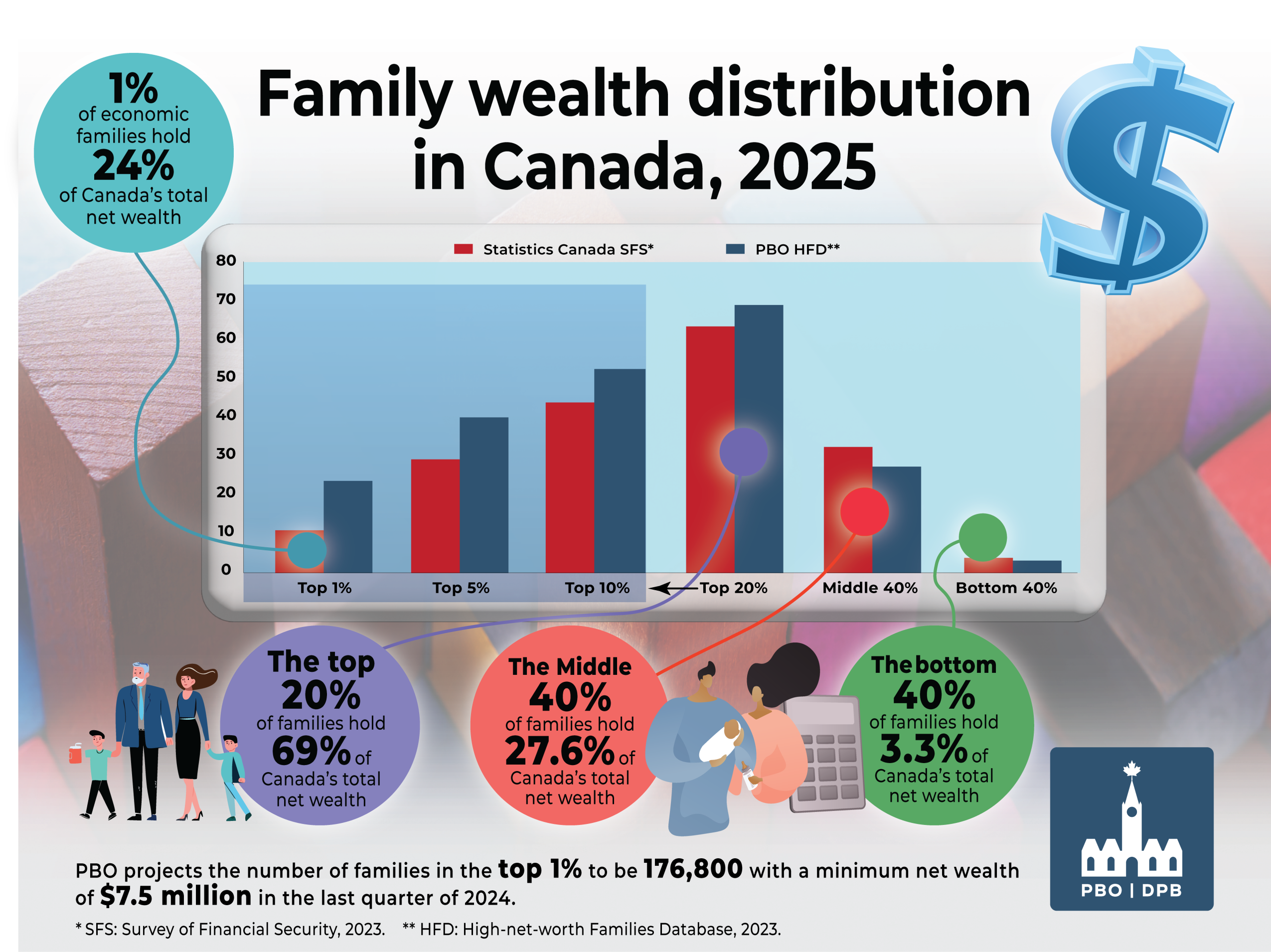 An initiative born from a lack of publicly available data that reliably assesses the top end of family wealth distribution in Canada, the Parliamentary Budget Officer (PBO) created the High-net-worth Families Database (HFD). The HFD offers an approach to address underreported and missing data of high-net-worth individuals that would otherwise distort analysis of wealth distribution.