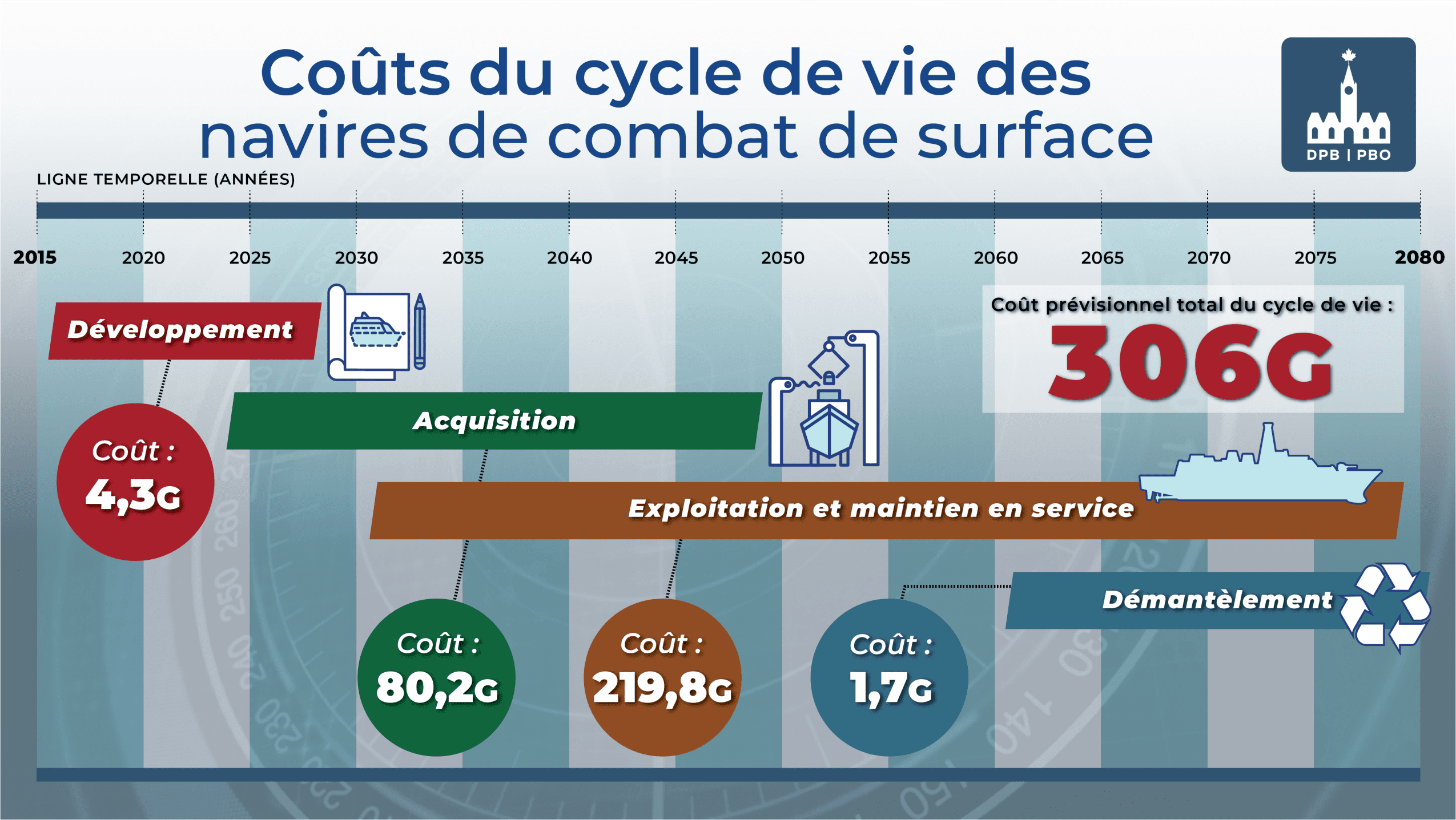 {"id":"RP-2223-016-C","is_published":"2022-10-27T12:57:08.000000Z","release_date":"2022-10-27T13:00:00.000000Z","last_revised_date":null,"title_en":"The Life Cycle Cost of the Canadian Surface Combatants \u2014 A Fiscal Analysis","title_fr":"Le co\u00fbt du cycle de vie des navires de combat de surface canadiens \u2014 Analyse financi\u00e8re","internal_id":"RP-2223-016-C","metadata":{"abstract_en":"In response to a request by the House of Commons Standing Committee on Government Operations and Estimates (OGGO), this report presents a cost analysis of the Canadian Surface Combatants (CSC) program, including estimates for the Development, Acquisition, Operations and Sustainment, and Disposal phases of the fleet\u2019s life cycle.","abstract_fr":"En r\u00e9ponse \u00e0 une demande du Comit\u00e9 permanent des op\u00e9rations gouvernementales et des pr\u00e9visions budg\u00e9taires de la Chambre des communes (le Comit\u00e9 OGGO), ce rapport pr\u00e9sente une analyse du co\u00fbt du programme des navires de combat de surface canadiens (NCSC), y compris des estimations concernant les \u00e9tapes D\u00e9veloppement, Acquisition, Exploitation et maintien en service, et D\u00e9mant\u00e8lement du cycle de vie de la flotte.","highlights":[{"content":{"en":"The total life cycle cost of the CSC program is estimated to be $306.0 billion.","fr":"Le co\u00fbt total du cycle de vie du programme des NCSC est \u00e9valu\u00e9 \u00e0 306,0 milliards de dollars."}},{"content":{"en":"Development phase costs are estimated at $4.3 billion.","fr":"Les co\u00fbts de l\u2019\u00e9tape D\u00e9veloppement sont \u00e9valu\u00e9s \u00e0 4,3 milliards de dollars."}},{"content":{"en":"Acquisition phase costs are estimated at $80.2 billion.","fr":"Les co\u00fbts de l\u2019\u00e9tape Acquisition sont \u00e9valu\u00e9s \u00e0 80,2 milliards de dollars."}},{"content":{"en":"Operations and Sustainment phase costs are estimated at $219.8 billion.","fr":"Les co\u00fbts de l\u2019\u00e9tape Exploitation et maintien en service sont \u00e9valu\u00e9s \u00e0 219,8 milliards de dollars."}},{"content":{"en":"Disposal phase costs are estimated at $1.7 billion.","fr":"Les co\u00fbts de l\u2019\u00e9tape D\u00e9mant\u00e8lement sont \u00e9valu\u00e9s \u00e0 1,7 milliard de dollars."}}]},"updated_at":"2022-10-27T13:07:04.000000Z","type":"RP","slug":"RP-2223-016-C--life-cycle-cost-canadian-surface-combatants-fiscal-analysis--cout-cycle-vie-navires-combat-surface-canadien-analyse-financiere","permalinks":{"en":{"website":"https:\/\/www.pbo-dpb.ca\/en\/publications\/RP-2223-016-C--life-cycle-cost-canadian-surface-combatants-fiscal-analysis--cout-cycle-vie-navires-combat-surface-canadien-analyse-financiere","preview":"https:\/\/www.pbo-dpb.ca\/en\/publications\/RP-2223-016-C--life-cycle-cost-canadian-surface-combatants-fiscal-analysis--cout-cycle-vie-navires-combat-surface-canadien-analyse-financiere"},"fr":{"website":"https:\/\/www.pbo-dpb.ca\/fr\/publications\/RP-2223-016-C--life-cycle-cost-canadian-surface-combatants-fiscal-analysis--cout-cycle-vie-navires-combat-surface-canadien-analyse-financiere","preview":"https:\/\/www.pbo-dpb.ca\/fr\/publications\/RP-2223-016-C--life-cycle-cost-canadian-surface-combatants-fiscal-analysis--cout-cycle-vie-navires-combat-surface-canadien-analyse-financiere"}},"artifacts":{"main":{"en":{"public":"https:\/\/distribution-a617274656661637473.pbo-dpb.ca\/747dfffc97de30adc19e38143f28b6e8334a0f7510c5c3a94c465a41c66cf504"},"fr":{"public":"https:\/\/distribution-a617274656661637473.pbo-dpb.ca\/a25341df5a2165e7ab5364bfc43491952286d843c550886f1c5c74900c45bb1a"}}},"coverpages":{"distribution":{"fr":{"small":"https:\/\/distribution-i696d61676573.pbo-dpb.ca\/7d3a826f05891a903b01ce87e2945409039ee5c46df45dbf69f90c04f2f6b159","large":"https:\/\/distribution-i696d61676573.pbo-dpb.ca\/f64f0b2153a38daf5a7adb7355348788d6a3014fdd9711942dca3757b82c0c1b","h150_png_optimized":"https:\/\/distribution-i696d61676573.pbo-dpb.ca\/769669ca3fd1efbe7ae93b348f2ef0cf4836728f4df7bb230cc0292554c49b5e","h150_webp":"https:\/\/distribution-i696d61676573.pbo-dpb.ca\/fe6ec469ce498e55cc5ba77179d2424fffe8eab07fdc0b9dfcc1a467ef614e9f","h300_png_optimized":"https:\/\/distribution-i696d61676573.pbo-dpb.ca\/67b407a7f8b68a347a9a27e30df5144767ab96edc7ec7c03c228536503350b78","h300_webp":"https:\/\/distribution-i696d61676573.pbo-dpb.ca\/0fc92f79b2a3cb5102786481887315faf0112de8af52f21bf4508a67e2b40195","h600_png_optimized":"https:\/\/distribution-i696d61676573.pbo-dpb.ca\/be234766e2ffdaeb043a23bedb05f5aa4f521b0dfe3ff99a1fbe07af7a928082","h600_webp":"https:\/\/distribution-i696d61676573.pbo-dpb.ca\/48734a477a7ada5c12d24f1babd1ee5ed88ad5e9d12573628acecd17280d72e4"},"en":{"small":"https:\/\/distribution-i696d61676573.pbo-dpb.ca\/f8b8ebd2aec827accd68cb4e17e6da06084612c317bbb975f2f7444fadc70c28","large":"https:\/\/distribution-i696d61676573.pbo-dpb.ca\/5b1cb91a3c16cfd9bddc43663e4c51ac2fc6f6be77470efb9bba69860d15d1fc","h150_png_optimized":"https:\/\/distribution-i696d61676573.pbo-dpb.ca\/7086667760e5f165c06bb8138752db4d39a23d619fb38e07f4aba16c1ba03875","h150_webp":"https:\/\/distribution-i696d61676573.pbo-dpb.ca\/c2ebb746cbf18772fc08f5eee2658d437ef2054182da585b5b674ca60e9aff59","h300_png_optimized":"https:\/\/distribution-i696d61676573.pbo-dpb.ca\/1318fc6e4dbe87fa134b0d711e4560c4a8d880a6592cde49d960482f1ca513ea","h300_webp":"https:\/\/distribution-i696d61676573.pbo-dpb.ca\/9925ed0bd426823c7477648585f02c19b5980ac165a49905bda37e0b17455780","h600_png_optimized":"https:\/\/distribution-i696d61676573.pbo-dpb.ca\/4fa433146d6bdc9acb394ef3c30e6cc97ad3653a9407f2947c02edeb948b084a","h600_webp":"https:\/\/distribution-i696d61676573.pbo-dpb.ca\/47a8d9aa2d0e624c20694e463ebb3e3769ab269724632f0daed25ba624a49cee"}}},"bills":[],"labels":[],"bibtex":{"en":"@techreport{PBO-RP2223016C,\n author={Busby, Carleigh and Kho, Albert and Penney, Christopher E.},\n title={The Life Cycle Cost of the Canadian Surface Combatants \\textemdash A Fiscal Analysis},\n institution={The Office