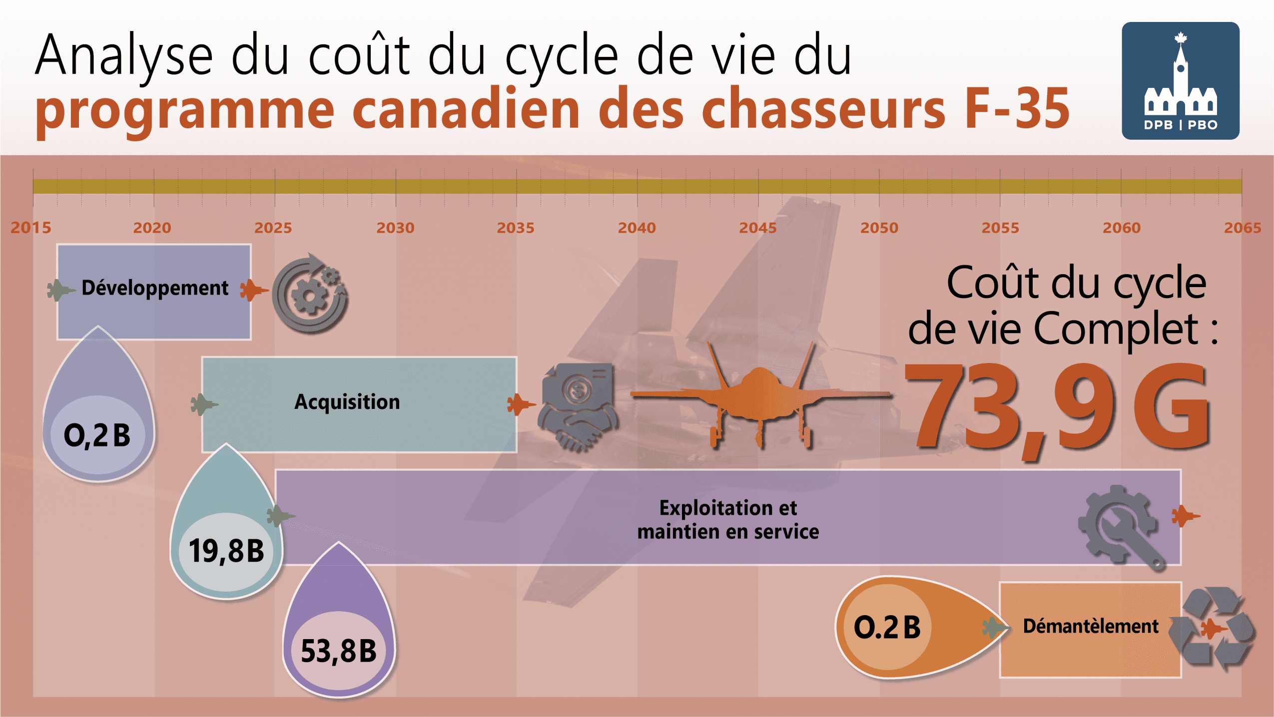 {"id":"RP-2324-018-S","is_published":"2023-11-02T12:57:05.000000Z","release_date":"2023-11-02T13:00:00.000000Z","last_revised_date":null,"title_en":"The Life Cycle Cost of Canada\u2019s F-35 Program \u2013 A Fiscal Analysis","title_fr":"Le co\u00fbt du cycle de vie du programme des F-35 du Canada \u2013 une analyse financi\u00e8re","internal_id":"RP-2324-018-S","metadata":{"abstract_en":"This report presents a cost analysis of Canada\u2019s F-35 program, including estimates for the Development, Acquisition, Operations and Sustainment, and Disposal phases.","abstract_fr":"Ce rapport pr\u00e9sente une analyse du co\u00fbt du programme des F-35 du Canada, y compris des estimations pour les \u00e9tapes D\u00e9veloppement, Acquisition, Exploitation et maintien en service, et D\u00e9mant\u00e8lement.","highlights":[{"content":{"en":"The total estimated cost of Canada\u2019s F-35 program is $73.9 billion.","fr":"Le co\u00fbt total du programme des F-35 du Canada est estim\u00e9 \u00e0 73,9 milliards de dollars."}},{"content":{"en":"Development phase costs are estimated at $0.2 billion.","fr":"Les co\u00fbts de l\u2019\u00e9tape D\u00e9veloppement sont estim\u00e9s \u00e0 0,2 milliard de dollars."}},{"content":{"en":"Acquisition phase costs are estimated at $19.8 billion.","fr":"Les co\u00fbts de l\u2019\u00e9tape Acquisition sont estim\u00e9s \u00e0 19,8 milliards de dollars."}},{"content":{"en":"Operations and Sustainment phase costs are estimated at 53.8 billion.","fr":"Les co\u00fbts de l\u2019\u00e9tape Exploitation et maintien en service sont estim\u00e9s \u00e0 53,8 milliards de dollars."}},{"content":{"en":"Disposal phase costs are estimated at $0.2 billion.","fr":"Les co\u00fbts de l\u2019\u00e9tape D\u00e9mant\u00e8lement sont estim\u00e9s \u00e0 0,2 milliard de dollars."}}]},"updated_at":"2023-11-02T12:57:05.000000Z","type":"RP","slug":"RP-2324-018-S--life-cycle-cost-canada-f-35-program-fiscal-analysis--cout-cycle-vie-programme-f-35-canada-une-analyse-financiere","permalinks":{"en":{"website":"https:\/\/www.pbo-dpb.ca\/en\/publications\/RP-2324-018-S--life-cycle-cost-canada-f-35-program-fiscal-analysis--cout-cycle-vie-programme-f-35-canada-une-analyse-financiere","preview":"https:\/\/www.pbo-dpb.ca\/en\/publications\/RP-2324-018-S--life-cycle-cost-canada-f-35-program-fiscal-analysis--cout-cycle-vie-programme-f-35-canada-une-analyse-financiere"},"fr":{"website":"https:\/\/www.pbo-dpb.ca\/fr\/publications\/RP-2324-018-S--life-cycle-cost-canada-f-35-program-fiscal-analysis--cout-cycle-vie-programme-f-35-canada-une-analyse-financiere","preview":"https:\/\/www.pbo-dpb.ca\/fr\/publications\/RP-2324-018-S--life-cycle-cost-canada-f-35-program-fiscal-analysis--cout-cycle-vie-programme-f-35-canada-une-analyse-financiere"}},"artifacts":{"main":{"en":{"public":"https:\/\/distribution-a617274656661637473.pbo-dpb.ca\/34b45b0bb9aeeadfd2cc6ba7c6380521d6b4a051c21a87fd2b7dd51767323e89"},"fr":{"public":"https:\/\/distribution-a617274656661637473.pbo-dpb.ca\/faff3496d1d039605e4e581b7c9261f58ffd6b24d40d298ca98053fea83fec6b"}}},"coverpages":{"distribution":{"fr":{"small":"https:\/\/distribution-i696d61676573.pbo-dpb.ca\/31c625ae91a1c91e4ba7e9053b22f7fddf0c21b876fb8a91a3c7ed3a1d842ed0","large":"https:\/\/distribution-i696d61676573.pbo-dpb.ca\/85c1ee48d7bdbec633b4af0676a91d47fc1dadba050a5af40de0c441f8094a44","h150_png_optimized":"https:\/\/distribution-i696d61676573.pbo-dpb.ca\/35db43d109751147d1b680b0f076e791e0f293fe3d010c637fce9eba10bd3289","h150_webp":"https:\/\/distribution-i696d61676573.pbo-dpb.ca\/dc48bdab24f6c1f2cfcfabd14a9a000c1c2706d7ec9a89786f22e1db5eb312f1","h300_png_optimized":"https:\/\/distribution-i696d61676573.pbo-dpb.ca\/632b9eff2228c030ebc60c589c69c3992271ad1e883ec2a152853d57648bb088","h300_webp":"https:\/\/distribution-i696d61676573.pbo-dpb.ca\/b1011129dd0830f6edcad7542dfe33c73181d6a36e427c82e1bf195e3bff6467","h600_png_optimized":"https:\/\/distribution-i696d61676573.pbo-dpb.ca\/3bd75bb2f0f7c07cd741f8e42e9424e3901b68f04bff14a48f4fe748fa826bf0","h600_webp":"https:\/\/distribution-i696d61676573.pbo-dpb.ca\/663ad6ee71c0d74036bfc192dea700e535603f887a5ba5217ecfdc06e6851542"},"en":{"small":"https:\/\/distribution-i696d61676573.pbo-dpb.ca\/0b90c0ecf839d5bffd66ff4f9abaa0b60129203bb2f366fa463d109b22e35232","large":"https:\/\/distribution-i696d61676573.pbo-dpb.ca\/2c1a8bd76717365494e643cb75060b73e1d0d31196cf1718657615f747e50c00","h150_png_optimized":"https:\/\/distribution-i696d61676573.pbo-dpb.ca\/82aa088d1a92f9a2154f51490f4fa58fec8735b4749fceaea8f9234c0ed758a8","h150_webp":"https:\/\/distribution-i696d61676573.pbo-dpb.ca\/18a0189d4f46308da1c65691ccdf0688d068c49a032b41c9fba04af4bf3fc302","h300_png_optimized":"https:\/\/distribution-i696d61676573.pbo-dpb.ca\/03ca098a54207dc52c46ffb453e680401fa6c93f57e0c005f306cf5bd9d7cbc6","h300_webp":"https:\/\/distribution-i696d61676573.pbo-dpb.ca\/d06af0bf44d538218d7834be783e40811433025363294788f7863f7b2f3a1c96","h600_png_optimized":"https:\/\/distribution-i696d61676573.pbo-dpb.ca\/4f29704c6f4686383e511e6faced9f0f5250c9acef8a40a25893c29ac11603f0","h600_webp":"https:\/\/distribution-i696d61676573.pbo-dpb.ca\/4e1e30ae629ebf577bd14967431c3100f52c246f91a20f481b744b2fbf5430ce"}}},"bills":[],"labels":[],"bibtex":{"en":"@techreport{PBO-RP2324018S,\n author={Kho, Albert and Penney, Christopher E. and Busby, Carleigh},\n title={The Life Cycle Cost of Canada\u2019s F-35 Program - A Fiscal Analysis},\n institution={The Office of the Parliamentary Budget Officer},\n year=2023,\n \n address = \u0022Ottawa, ON\u0022\n}","fr":"@techreport{DPB-RP2324018S,\n author={Kho, Albert and Penney, Christopher E. and Busby, Carleigh},\n title={Le cout du cycle de vie du programme des F-35 du Canada - une analyse financi\\`{e}re},\n institution={Bureau du directeur parlementaire du budget},\n year=2023,\n \n address = \u0022Ottawa, ON\u0022\n}"}}