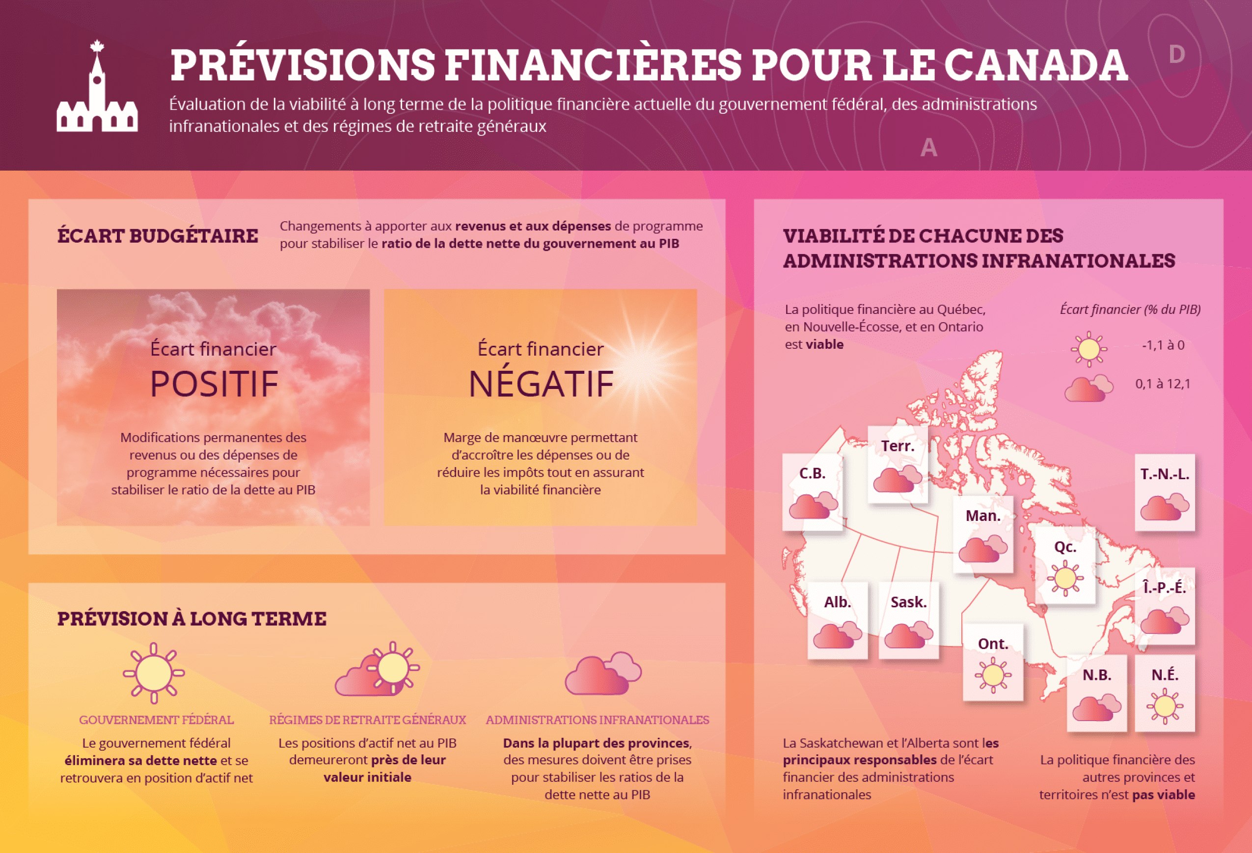 Dans ce rapport, le DPB présente son évaluation de la viabilité financière à long terme du gouvernement fédéral, des administrations infranationales et des régimes de retraite généraux.